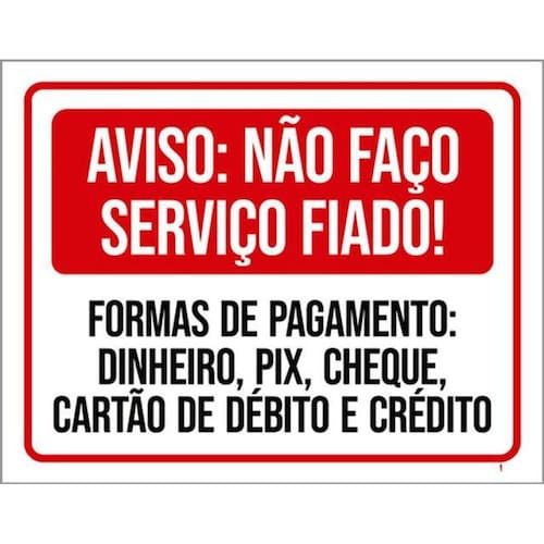 Kit 3 Placas Aviso Não Faço Serviço Fiado Formas Pagamento