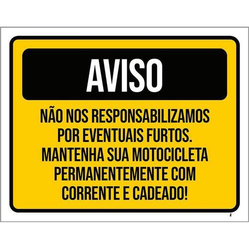 Kit 3 Placas Aviso Não Responsabilizamos Eventuais Furtos Placas de sinalizaço fabricadas com poliestireno de alto impacto PSAI de 2mm e impressão ultravioleta.