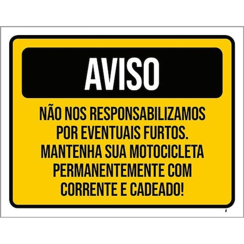 Kit 3 Placas Aviso Não Responsabilizamos Eventuais Furtos Placas de sinalizaço fabricadas com poliestireno de alto impacto PSAI de 2mm e impressão ultravioleta.