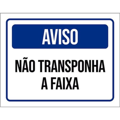 Kit 3 Placas Aviso Não Transponha A Faixa Azul Placas de sinalizaço fabricadas com poliestireno de alto impacto PSAI de 2mm e impressão ultravioleta.