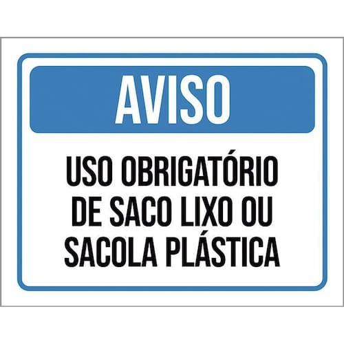 Kit 3 Placas Aviso Obrigatório Saco Lixo Sacola Plástica Placas de sinalizaço fabricadas com poliestireno de alto impacto PSAI de 2mm e impressão ultravioleta.