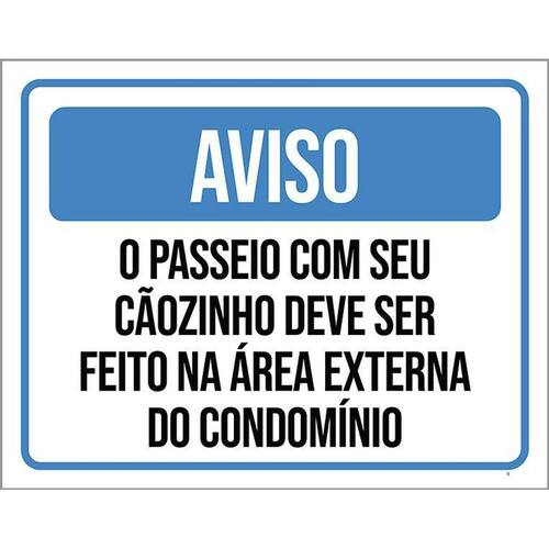 Kit 3 Placas Aviso Passeio Cãozinho Área Externa Condomínio
