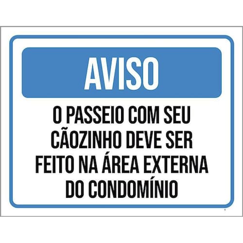 Kit 3 Placas Aviso Passeio Cãozinho Área Externa Condomínio