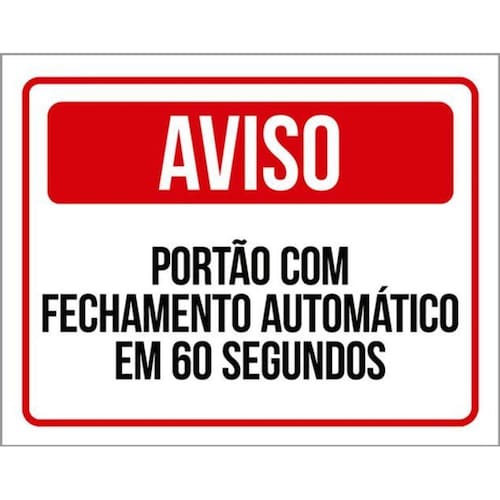 Kit 3 Placas Aviso Portão Automático Fechamento 80 Segundos