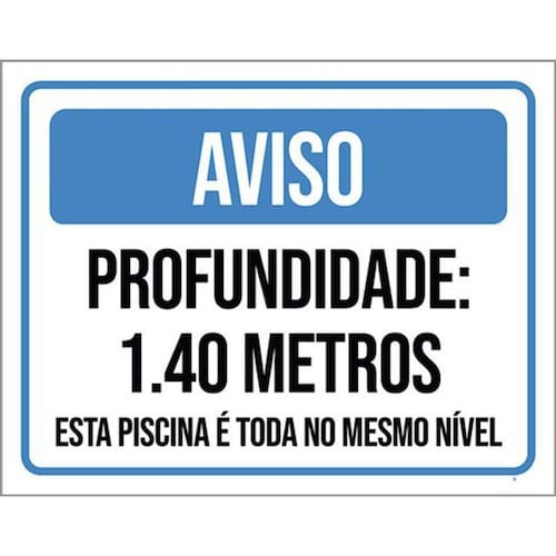 Kit 3 Placas Aviso Profundidade 1 E 40 Metros Piscina 36x46 Placas de sinalizaço fabricadas com poliestireno de alto impacto PSAI de 2mm e impressão ultravioleta.