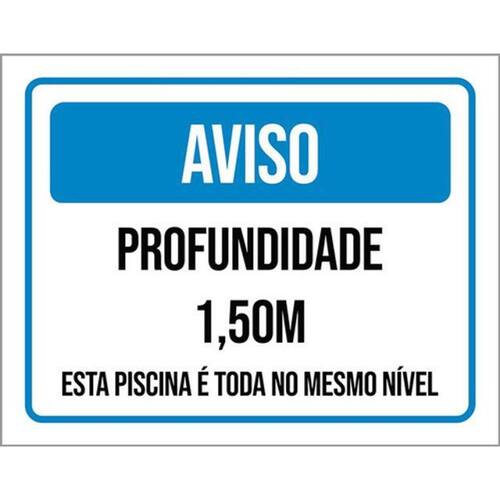 Kit 3 Placas Aviso Profundidade 1,50 Metros Placas de sinalizaço fabricadas com poliestireno de alto impacto PSAI de 2mm e impressão ultravioleta.