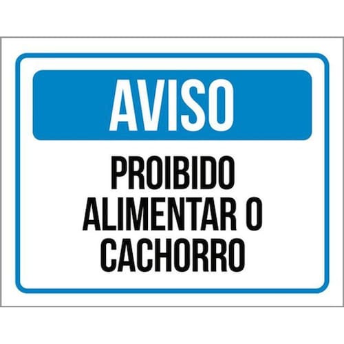 Kit 3 Placas Aviso Proibido Alimentar O Cachorro Azul Placas de sinalizaço fabricadas com poliestireno de alto impacto PSAI de 2mm e impressão ultravioleta.