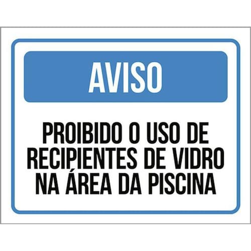 Kit 3 Placas Aviso Proibido Uso Recipientes Vidro Piscina Placas de sinalizaço fabricadas com poliestireno de alto impacto PSAI de 2mm e impressão ultravioleta.