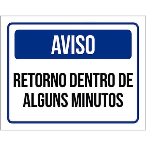 Kit 3 Placas Aviso Retorno Dentro De Alguns Minutos 36x46 Placas de sinalizaço fabricadas com poliestireno de alto impacto PSAI de 2mm e impressão ultravioleta.