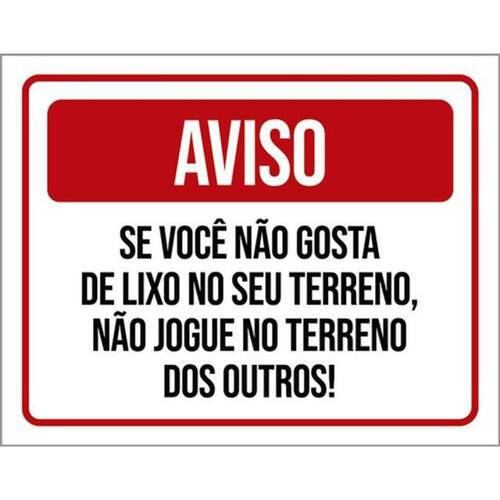 Kit 3 Placas Aviso Se Não Gosta Lixo Terreno Não Jogue Placas de sinalizaço fabricadas com poliestireno de alto impacto PSAI de 2mm e impressão ultravioleta.