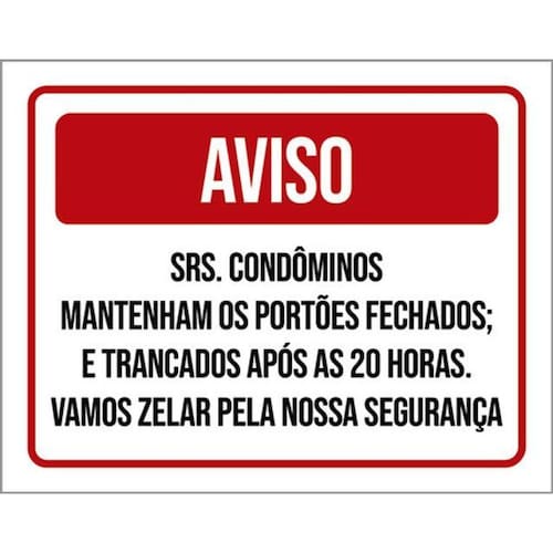 Kit 3 Placas Aviso Srs Condôminos Portões Fechados Zelar Placas de sinalizaço fabricadas com poliestireno de alto impacto PSAI de 2mm e impressão ultravioleta.