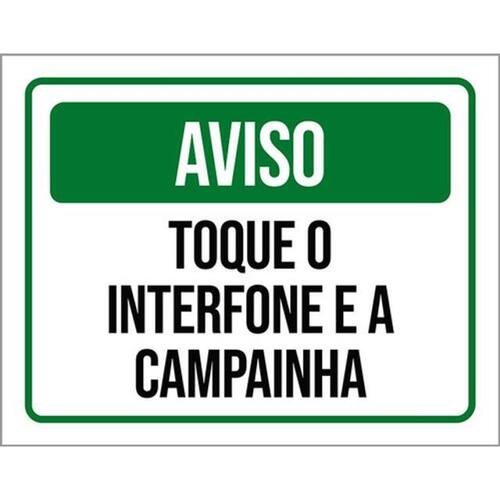 Kit 3 Placas Aviso Toque Interfone Campainha Verde Placas de sinalizaço fabricadas com poliestireno de alto impacto PSAI de 2mm e impressão ultravioleta.