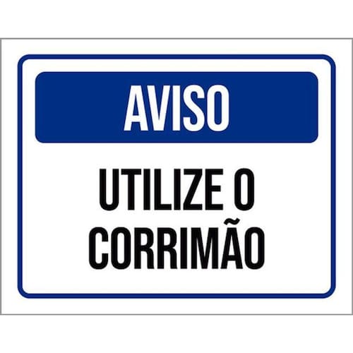 Kit 3 Placas Aviso Utilize Corrimão 36x46 Placas de sinalizaço fabricadas com poliestireno de alto impacto PSAI de 2mm e impressão ultravioleta.
