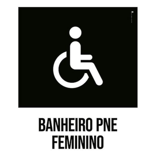 Kit 3 Placas Banheiro Pne Feminino Desenho Placas de sinalizaço fabricadas com poliestireno de alto impacto PSAI de 2mm e impressão ultravioleta.