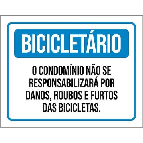 Kit 3 Placas Bicicletário Condomínio Roubos Bicicletas Placas de sinalizaço fabricadas com poliestireno de alto impacto PSAI de 2mm e impressão ultravioleta.