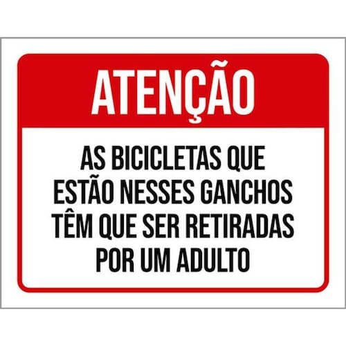 Kit 3 Placas Bicicletas Nesses Ganchos Tem Retiradas Adulto Placas de sinalizaço fabricadas com poliestireno de alto impacto PSAI de 2mm e impressão ultravioleta.