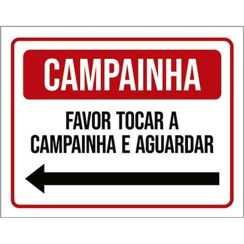 Kit 3 Placas Campainha Favor Tocar Aguardar Seta Esquerda Placas de sinalizaço fabricadas com poliestireno de alto impacto PSAI de 2mm e impressão ultravioleta.