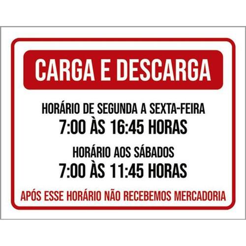 Kit 3 Placas Carga Descarga Horário Segunda Sexta Sábados