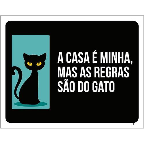 Kit 3 Placas Casa Minha Mas Regras São Do Gato Placas de sinalizaço fabricadas com poliestireno de alto impacto PSAI de 2mm e impressão ultravioleta.