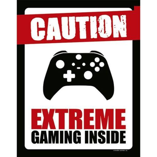 Kit 3 Placas Caution Extreme Gaming Inside Xb Placas de sinalizaço fabricadas com poliestireno de alto impacto PSAI de 2mm e impressão ultravioleta.