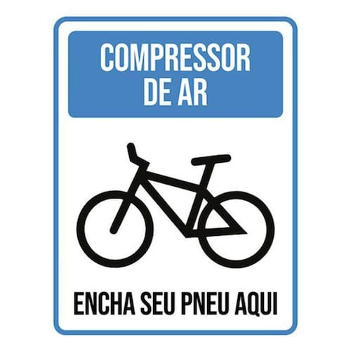 Kit 3 Placas Compressor De Ar Encha Seu Pneu Aqui Ícone Placas de sinalizaço fabricadas com poliestireno de alto impacto PSAI de 2mm e impressão ultravioleta.
