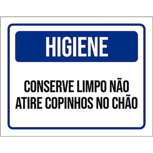 Kit 3 Placas Conserve Limpo Não Atire Copinhos No Chão Placas de sinalizaço fabricadas com poliestireno de alto impacto PSAI de 2mm e impressão ultravioleta.
