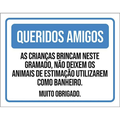 Kit 3 Placas Crianças Brincam No Gramado Não Deixe Animais