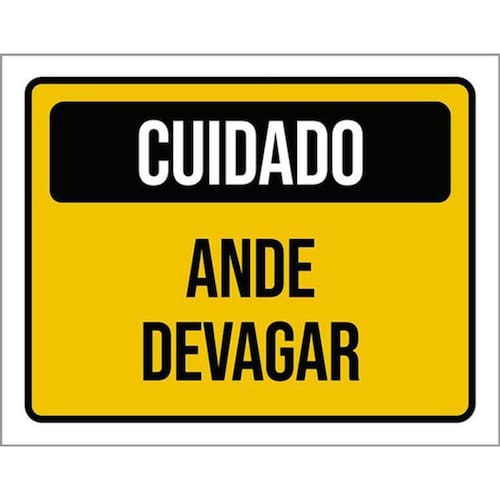 Kit 3 Placas Cuidado Ande Devagar 36x46 Placas de sinalizaço fabricadas com poliestireno de alto impacto PSAI de 2mm e impressão ultravioleta.