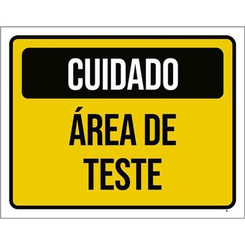 Kit 3 Placas Cuidado Área De Teste Amarelo 36x46 Placas de sinalizaço fabricadas com poliestireno de alto impacto PSAI de 2mm e impressão ultravioleta.