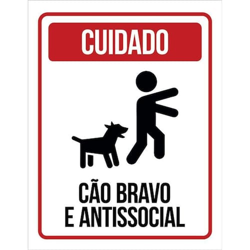 Kit 3 Placas Cuidado Cão Bravo E Antissocial