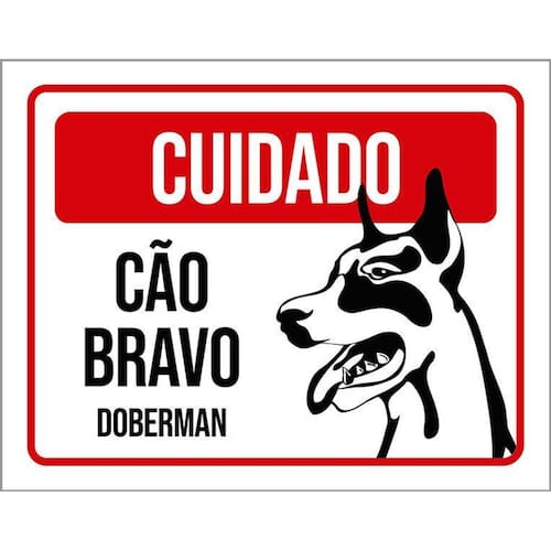 Kit 3 Placas Cuidado Cão Cachorro Bravo Doberman