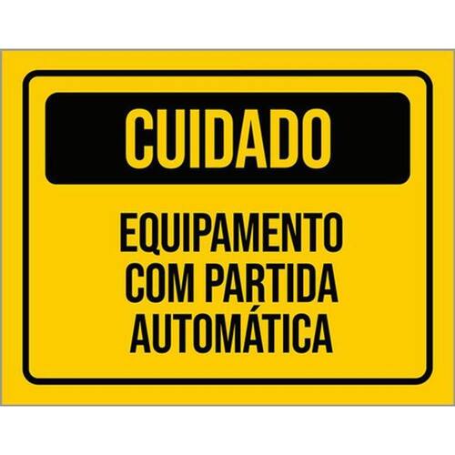 Kit 3 Placas Cuidado Equipamento Partida Automática 36x46 Placas de sinalizaço fabricadas com poliestireno de alto impacto PSAI de 2mm e impressão ultravioleta.