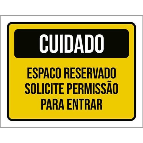 Kit 3 Placas Cuidado Espaço Reservado Solicite Permissão Placas de sinalizaço fabricadas com poliestireno de alto impacto PSAI de 2mm e impressão ultravioleta.