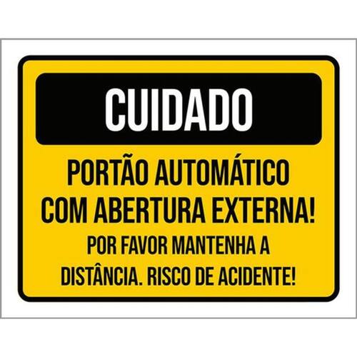 Kit 3 Placas Cuidado Portão Abertura Externa Distância Risco Placas de sinalizaço fabricadas com poliestireno de alto impacto PSAI de 2mm e impressão ultravioleta.