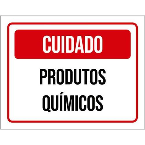 Kit 3 Placas Cuidado Produtos Químicos Placas de sinalizaço fabricadas com poliestireno de alto impacto PSAI de 2mm e impressão ultravioleta.