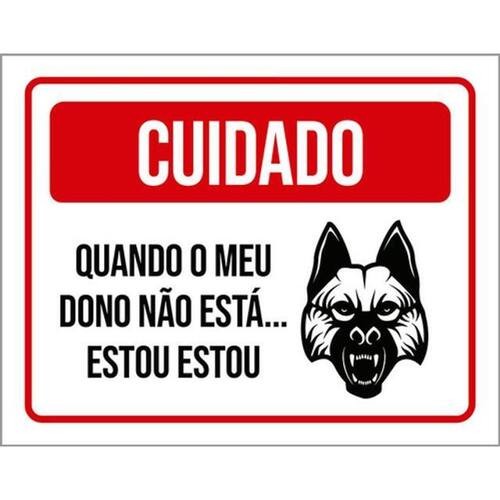 Kit 3 Placas Cuidado Quando Meu Dono Não Está Estou 36x46 Placas de sinalizaço fabricadas com poliestireno de alto impacto PSAI de 2mm e impressão ultravioleta.