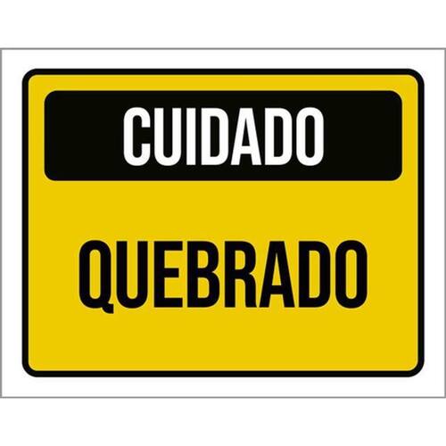 Kit 3 Placas Cuidado Quebrado Amarelo 36x46 Placas de sinalizaço fabricadas com poliestireno de alto impacto PSAI de 2mm e impressão ultravioleta.
