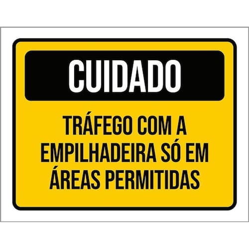 Kit 3 Placas Cuidado Tráfego Empilhadeira Áreas Permitidas Placas de sinalizaço fabricadas com poliestireno de alto impacto PSAI de 2mm e impressão ultravioleta.