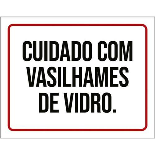 Kit 3 Placas Cuidado Vasilhames De Vidro 36x46 Placas de sinalizaço fabricadas com poliestireno de alto impacto PSAI de 2mm e impressão ultravioleta.
