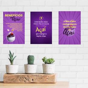 Kit 3 Placas De Parede Açaí 18x27cm
