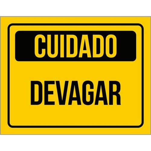 Kit 3 Placas De Sinalização Aviso Cuidado Devagar Placas de sinalizaço fabricadas com poliestireno de alto impacto PSAI de 2mm e impressão ultravioleta.