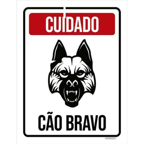 Kit 3 Placas De Sinalização - Cuidado Cão Bravo Placas de sinalizaço fabricadas com poliestireno de alto impacto PSAI de 2mm e impressão ultravioleta.