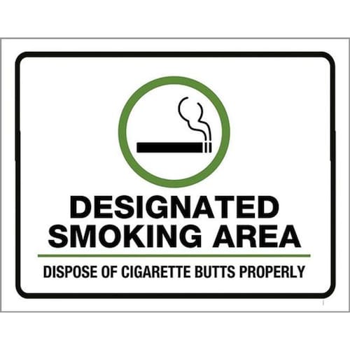 Kit 3 Placas De Sinalização - Designated Smoking Area Placas de sinalizaço fabricadas com poliestireno de alto impacto PSAI de 2mm e impressão ultravioleta.