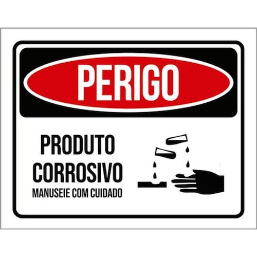 Kit 3 Placas De Sinalização - Perigo Produto Corrosivo Placas de sinalizaço fabricadas com poliestireno de alto impacto PSAI de 2mm e impressão ultravioleta.
