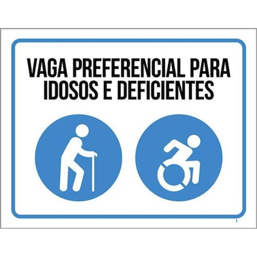 Kit 3 Placas De Sinalização - Vaga Preferencial Idosos Placas de sinalizaço fabricadas com poliestireno de alto impacto PSAI de 2mm e impressão ultravioleta.
