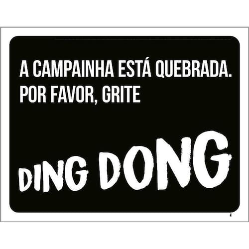 Kit 3 Placas Decorativa - Campainha Quebrada Grite Ding Dong Placas de sinalizaço fabricadas com poliestireno de alto impacto PSAI de 2mm e impressão ultravioleta.