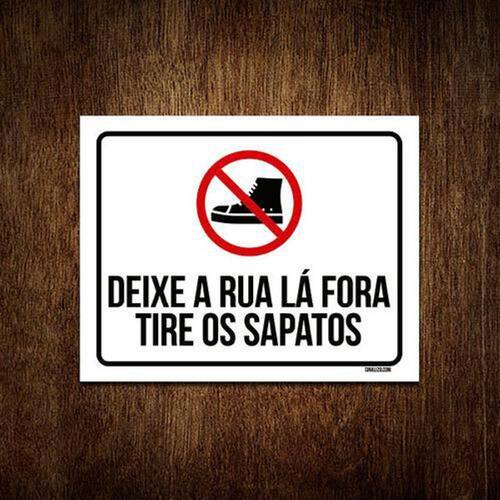 Kit 3 Placas Decorativa - Deixe Rua Lá Fora Tire Sapatos - Informações do Produto: Kit com 3 placas decorativas iguais fabricadas com poliestireno de alto impacto PSAI de 2mm e adesivo vinil automotivo de alta performance. - Medidas: 18cm x 23cm - Fixação: Todas as placas possuem adesivo dupla face para aplicação em qualquer tipo de superfície lisa. de 12 meses e disponibilidade imediata. Marca: Não Informado