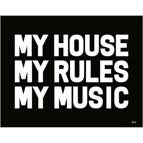 Kit 3 Placas Decorativa - My House My Rules My Music Placas de sinalizaço fabricadas com poliestireno de alto impacto PSAI de 2mm e impressão ultravioleta.