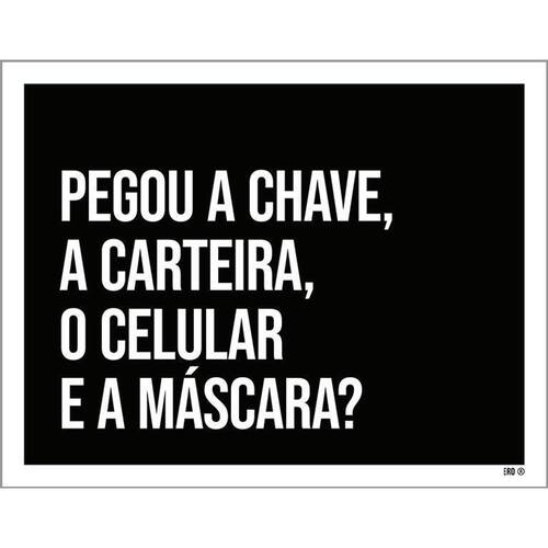 Kit 3 Placas Decorativa Pegou Chave Carteira Celular Máscara Placas de sinalizaço fabricadas com poliestireno de alto impacto PSAI de 2mm e impressão ultravioleta.