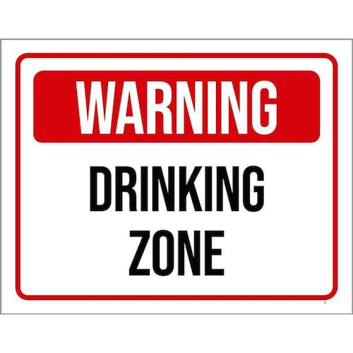 Kit 3 Placas Decorativa - Warning Drinking Zone Placas de sinalizaço fabricadas com poliestireno de alto impacto PSAI de 2mm e impressão ultravioleta.